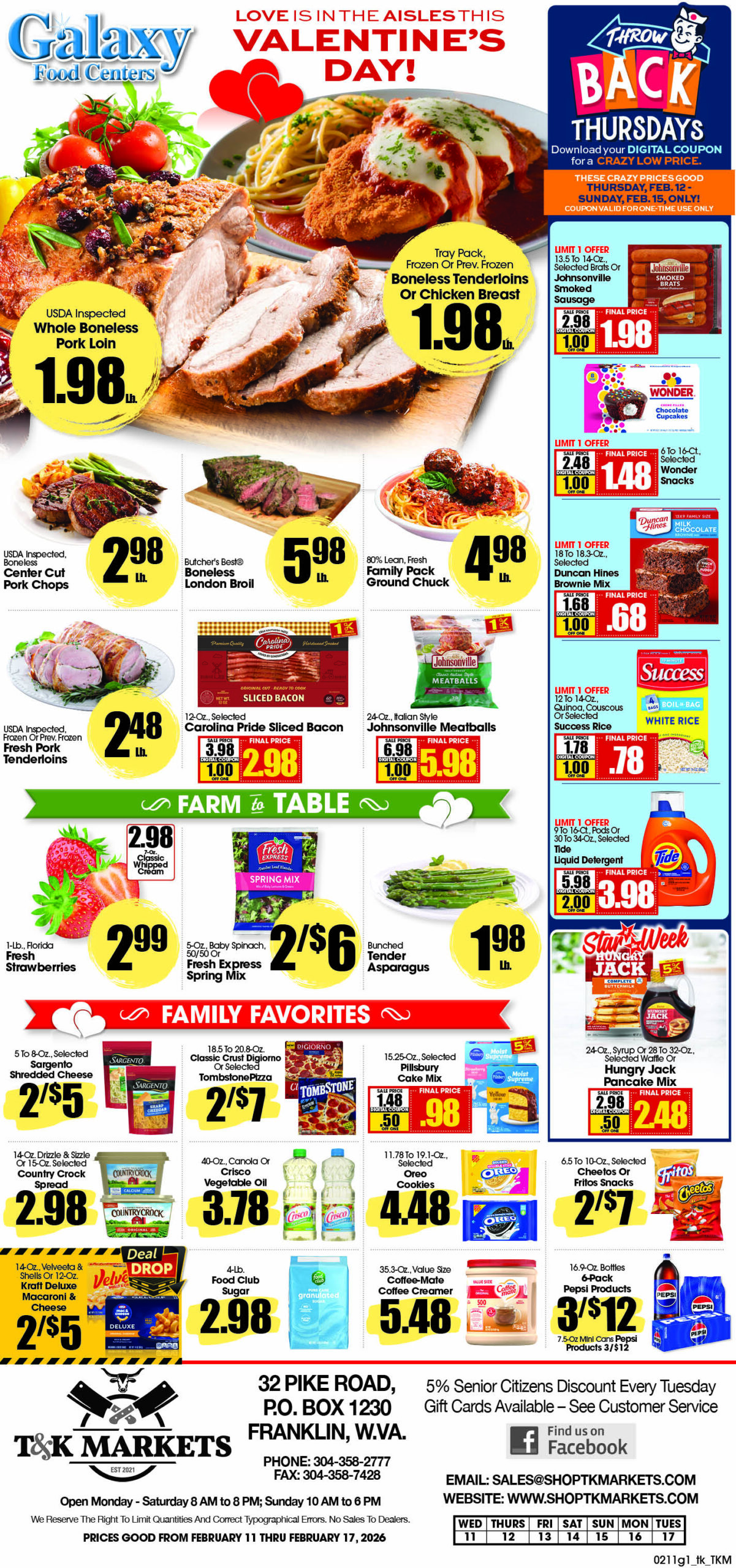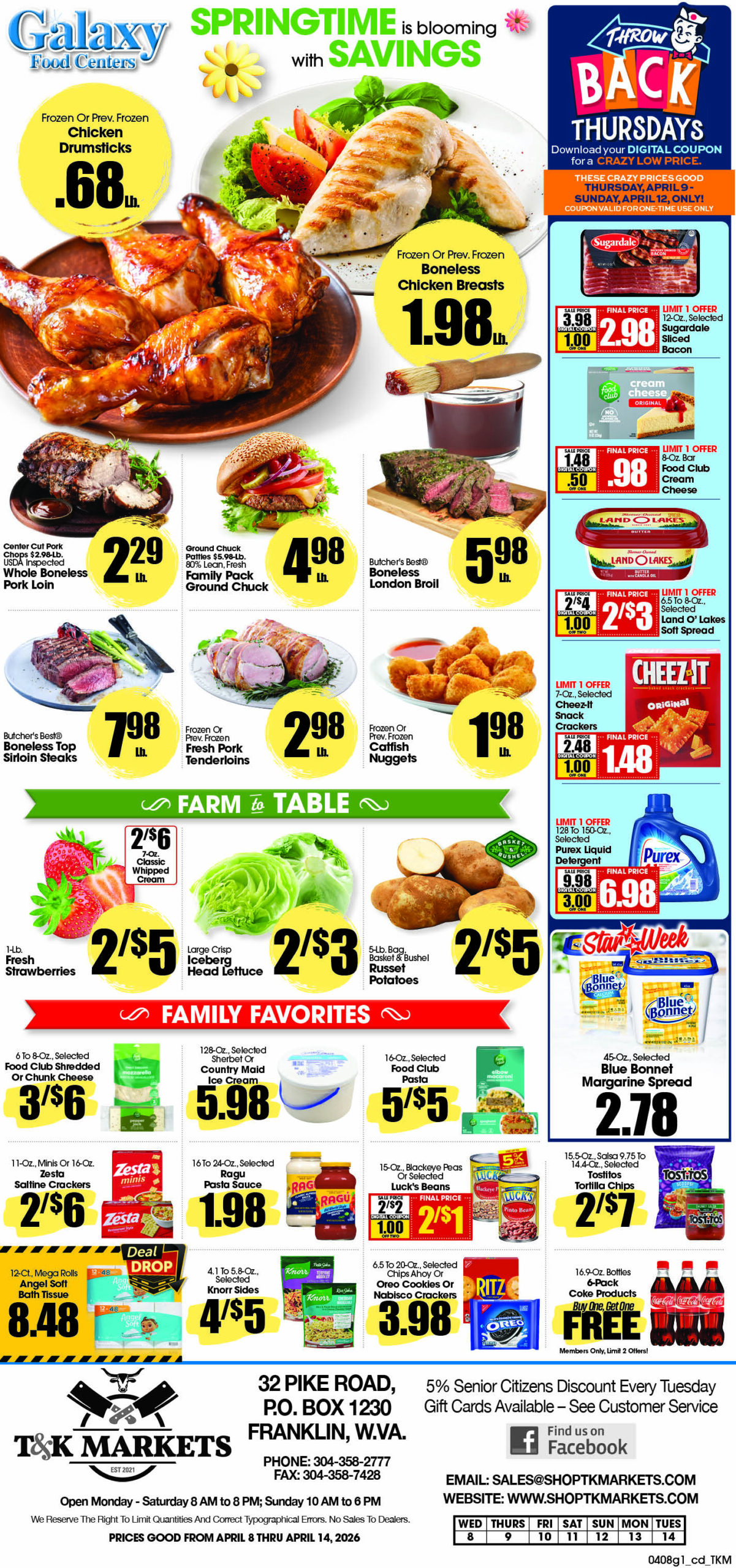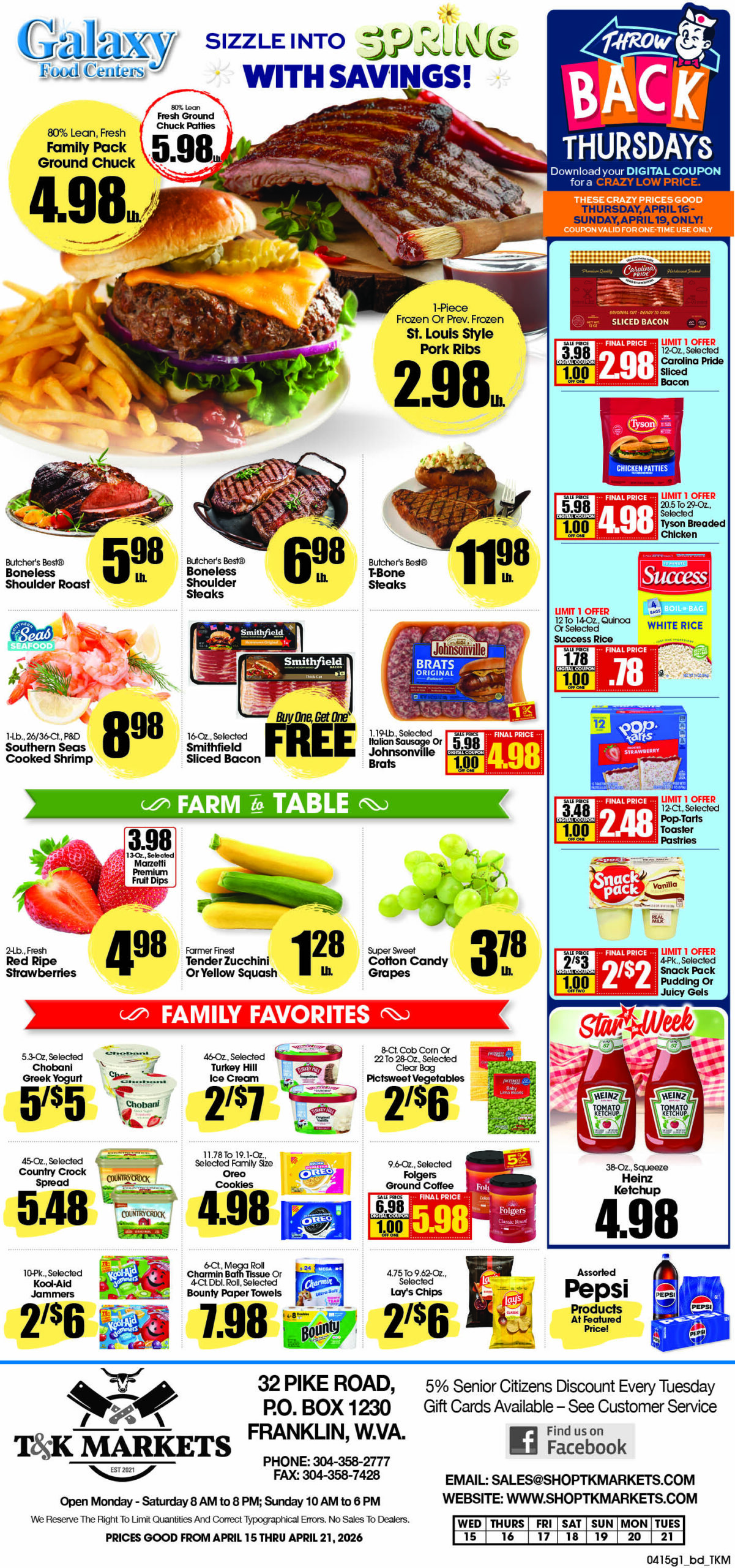 T&K Markets, LLC is a continuation of a family owned and operated full-service retail grocery store. Started in 1970 by Arthur W. Thomas of Franklin Co. VA as Franklin IGA Food liner. In 1991 the retail store was purchased by Alan L. Thomas of Franklin, WV and Wayne Edwards of Waynesboro VA. After the untimely death of Mr. Edwards, Alan Thomas carried the store for 23 years until 2022. Now, Cory Thomas (3rd Generation owner) alongside of Jerry Kimble, a devoted meat department manager of 25 years, aim to continue the time-honored tradition of serving the community through providing unparalleled customer service and unmatched food sourcing for the small town of Franklin, WV.