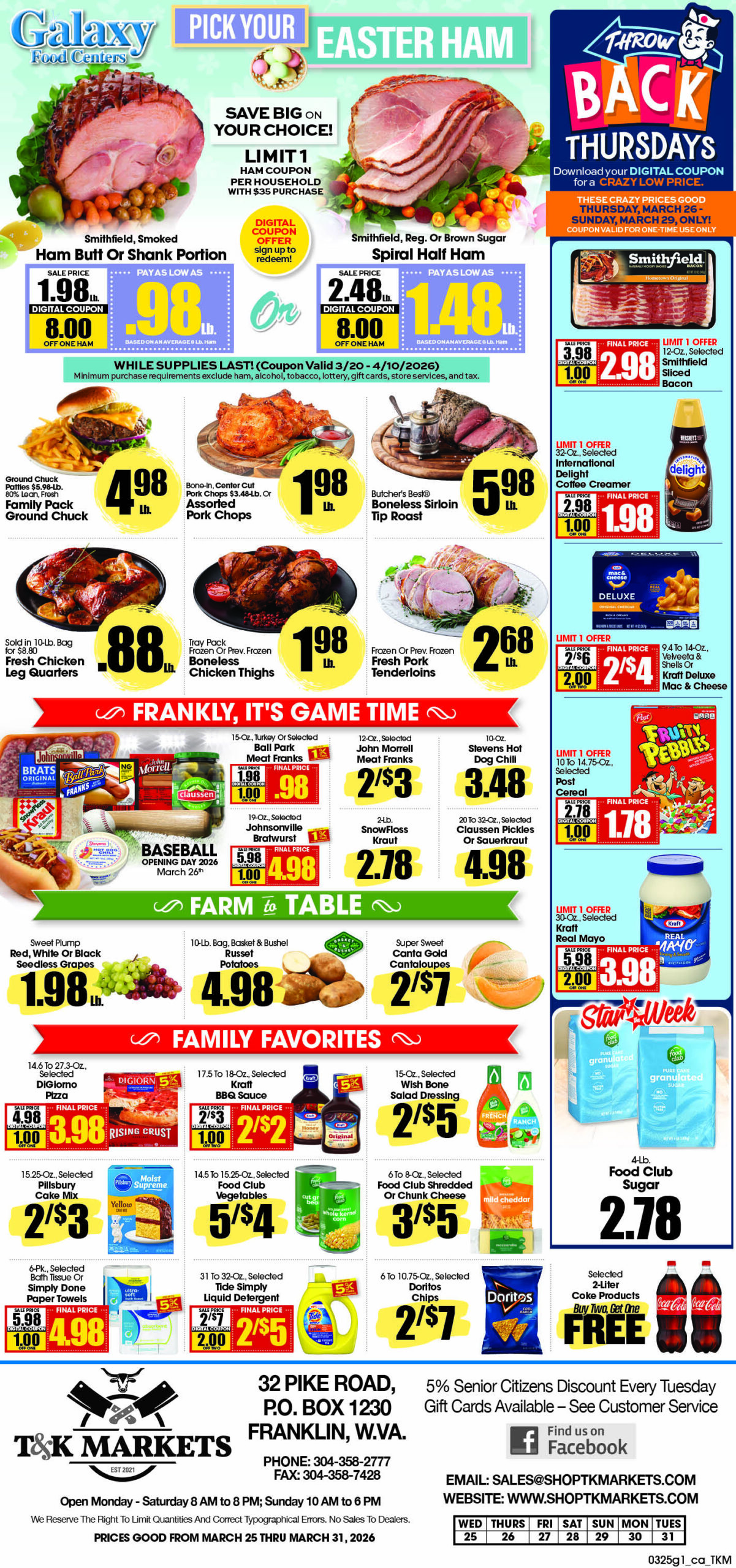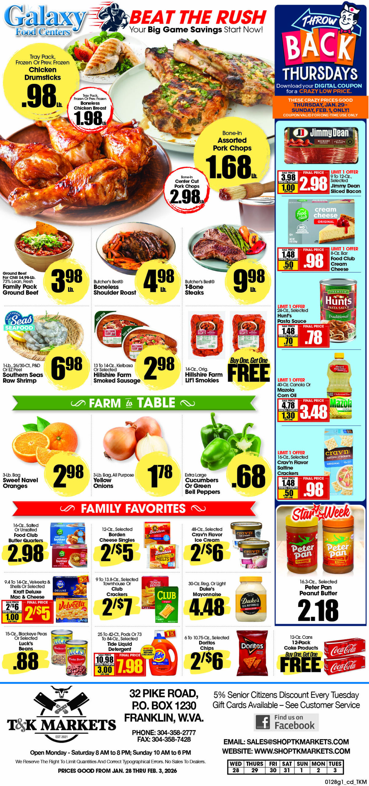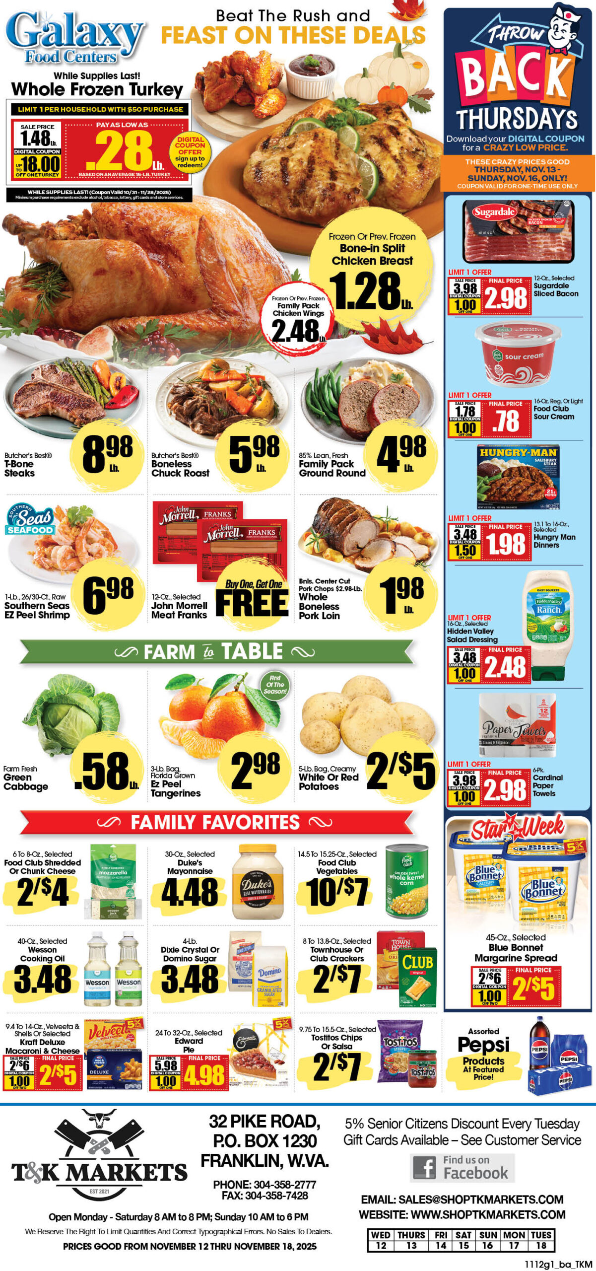 T&K Markets, LLC is a continuation of a family owned and operated full-service retail grocery store. Started in 1970 by Arthur W. Thomas of Franklin Co. VA as Franklin IGA Food liner. In 1991 the retail store was purchased by Alan L. Thomas of Franklin, WV and Wayne Edwards of Waynesboro VA. After the untimely death of Mr. Edwards, Alan Thomas carried the store for 23 years until 2022. Now, Cory Thomas (3rd Generation owner) alongside of Jerry Kimble, a devoted meat department manager of 25 years, aim to continue the time-honored tradition of serving the community through providing unparalleled customer service and unmatched food sourcing for the small town of Franklin, WV.